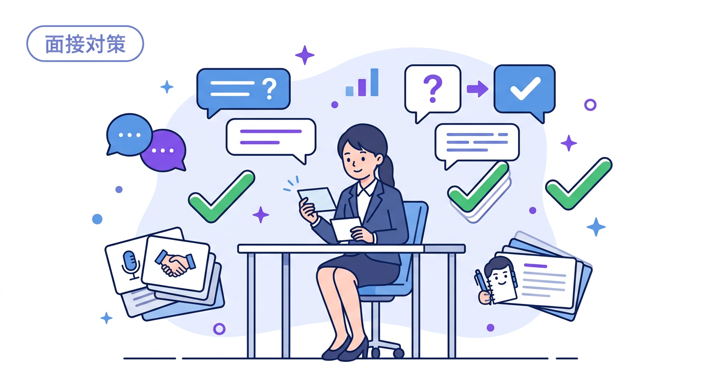 総合型選抜の面接で何を聞かれるか不安な高校生へ。基本質問10問・深掘り質問10問・学部別質問10問の計30問を、PREP法の回答テンプレートとNG例のビフォーアフター付きで解説。