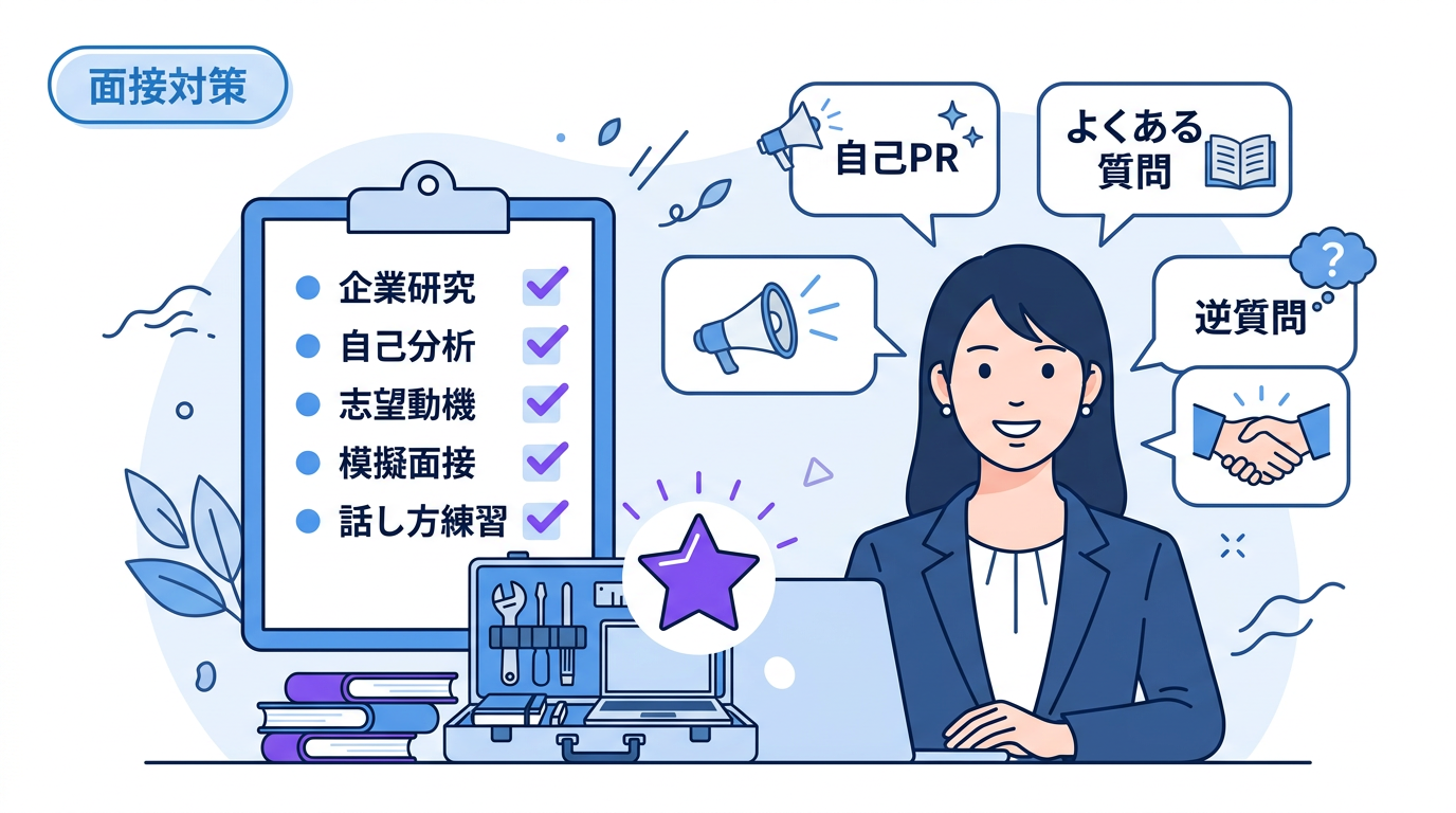 総合型選抜のオンライン面接が不安な高校生へ。機材チェックリスト、背景・カメラ位置の設定方法、オンライン特有の話し方のコツ、トラブル対処法を完全ガイド。