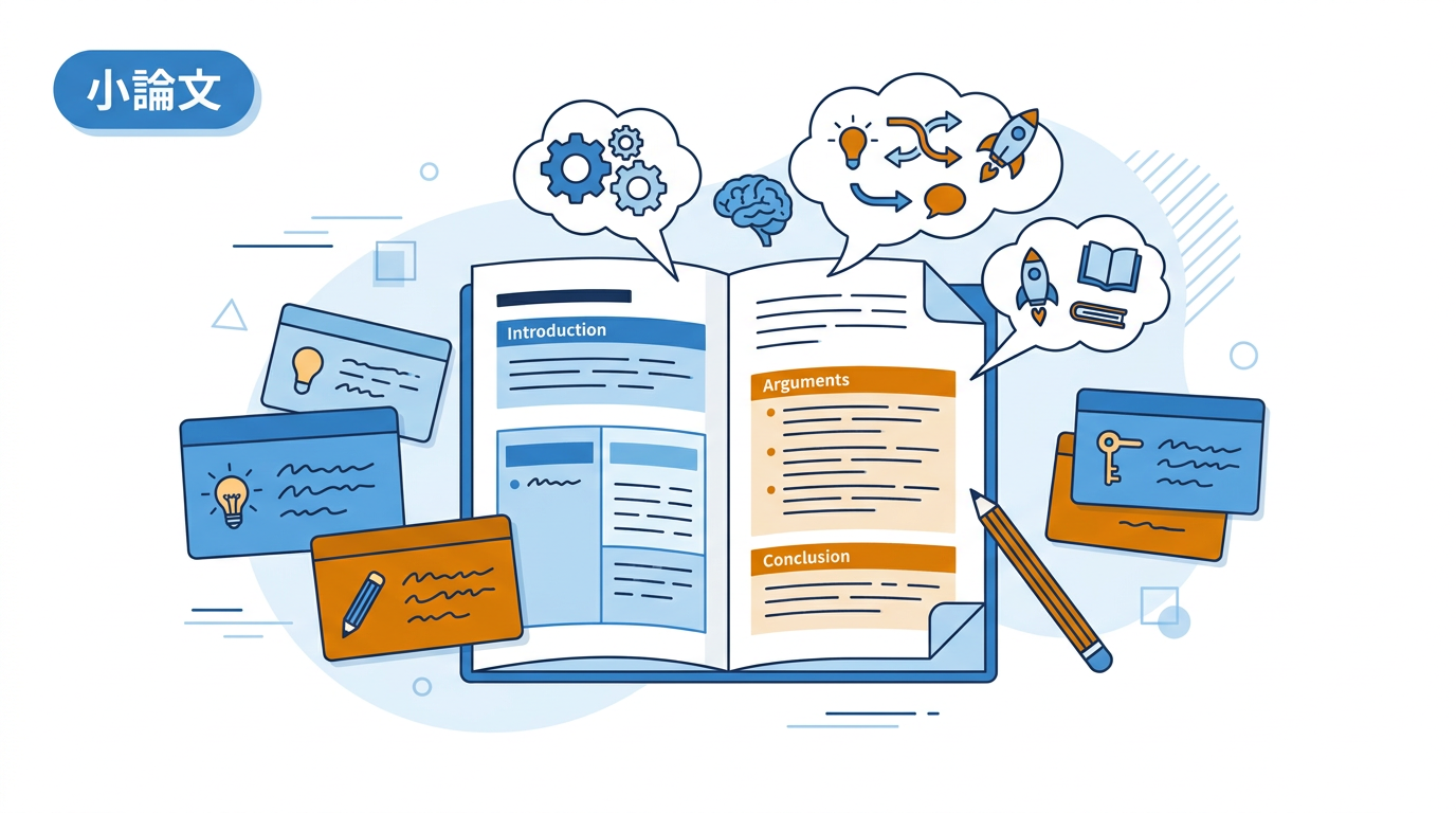 2026年度の総合型選抜で出題が予想される小論文テーマ10選。AI・環境・少子化など各テーマの背景データ、出題されやすい学部、賛否両論の論点整理、日常のテーマストック法を解説。